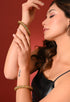 Celebrate timeless craftsmanship with this elegant antique gold kada bracelet, crafted from premium-quality alloy for durability and comfort. The design features intricate floral carvings highlighted with square-cut ruby-tone and emerald-tone stones, creating a rich, traditional look. With its detailed texture and graceful finish, this kada is perfect for festive occasions, weddings, and elevating ethnic or fusion outfits.