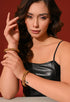 Add a refined touch of elegance to your look with this antique gold kada bracelet, crafted from high-quality alloy for lasting wear. The design features neatly aligned ruby-tone stones set in a sleek linear pattern, enhanced with delicate textured detailing for a rich traditional finish. Elegant yet versatile, this kada is perfect for festive occasions, weddings, and elevating everyday ethnic or fusion outfits.