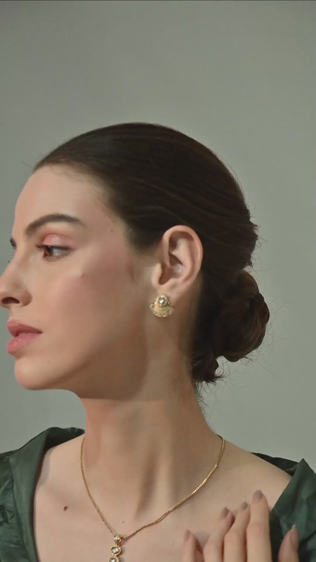 The Golden Grace Kundan Pearl Jewelry Set brings a perfect balance of sophistication and tradition. Featuring a beautifully detailed pendant and matching earrings adorned with lustrous kundan stones and a touch of pearl charm, this set enhances your elegance effortlessly - ideal for festive celebrations and special occasions.