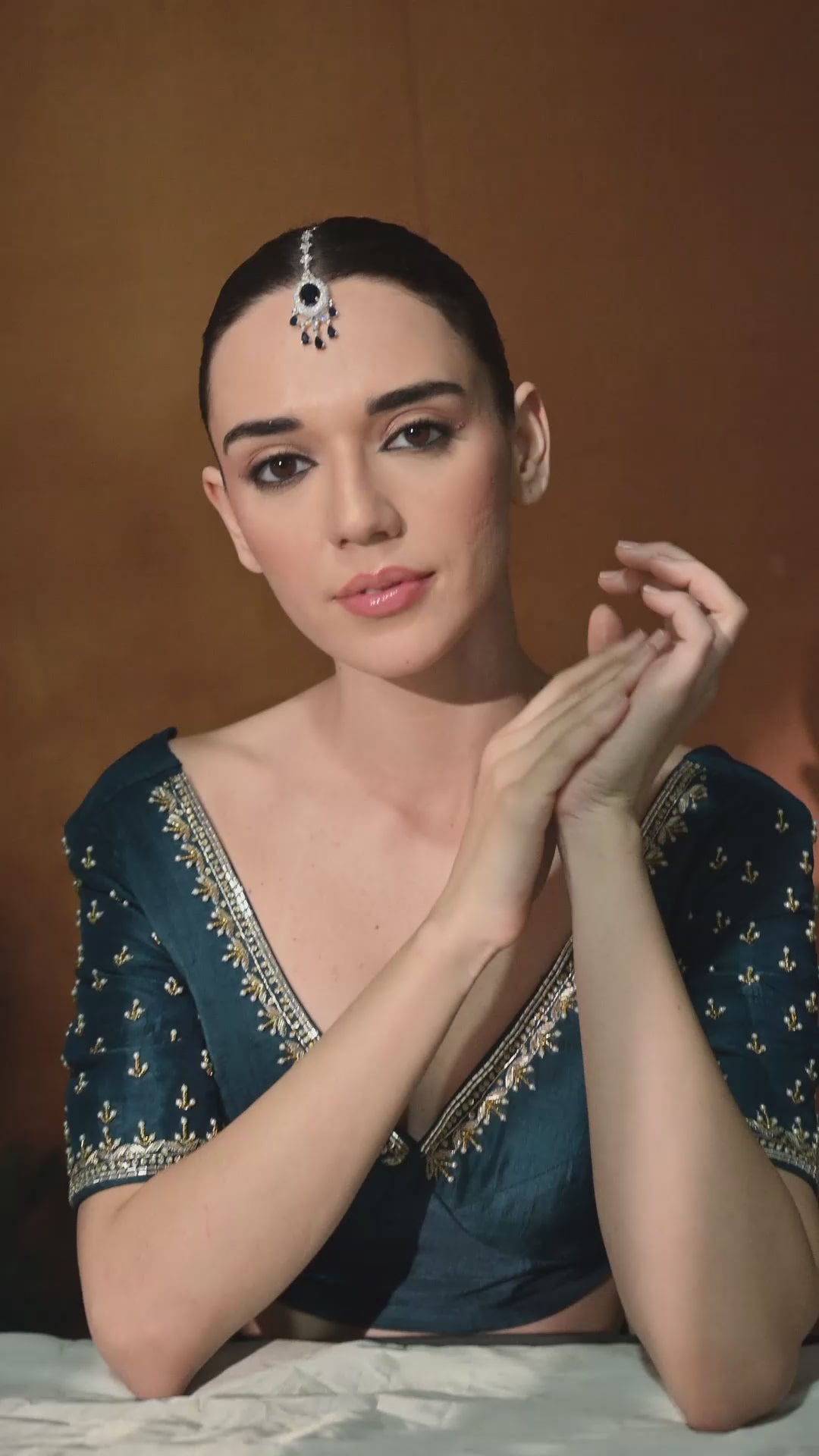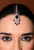 The Sapphire Nightfall Tikka is a striking blend of elegance and royal charm. Designed in a polished silver-tone finish, it features a deep sapphire-blue center stone surrounded by a halo of sparkling clear crystals. Delicate sapphire teardrop drops sway gently below, adding movement and a luxurious touch. This tikka rests beautifully along the hairline, drawing attention to the eyes and enhancing your facial features. Perfect for weddings, evening celebrations, and festive occasions, it brings a bold yet graceful statement to any traditional look.