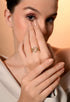 The Golden Link Luxe Ring is a true embodiment of contemporary glamour and sophistication. Featuring an interlocking geometric design adorned with sparkling crystals, this piece radiates class and confidence. The lustrous gold finish perfectly complements the shimmering stones, making it an ideal choice for both everyday chic and evening allure.
